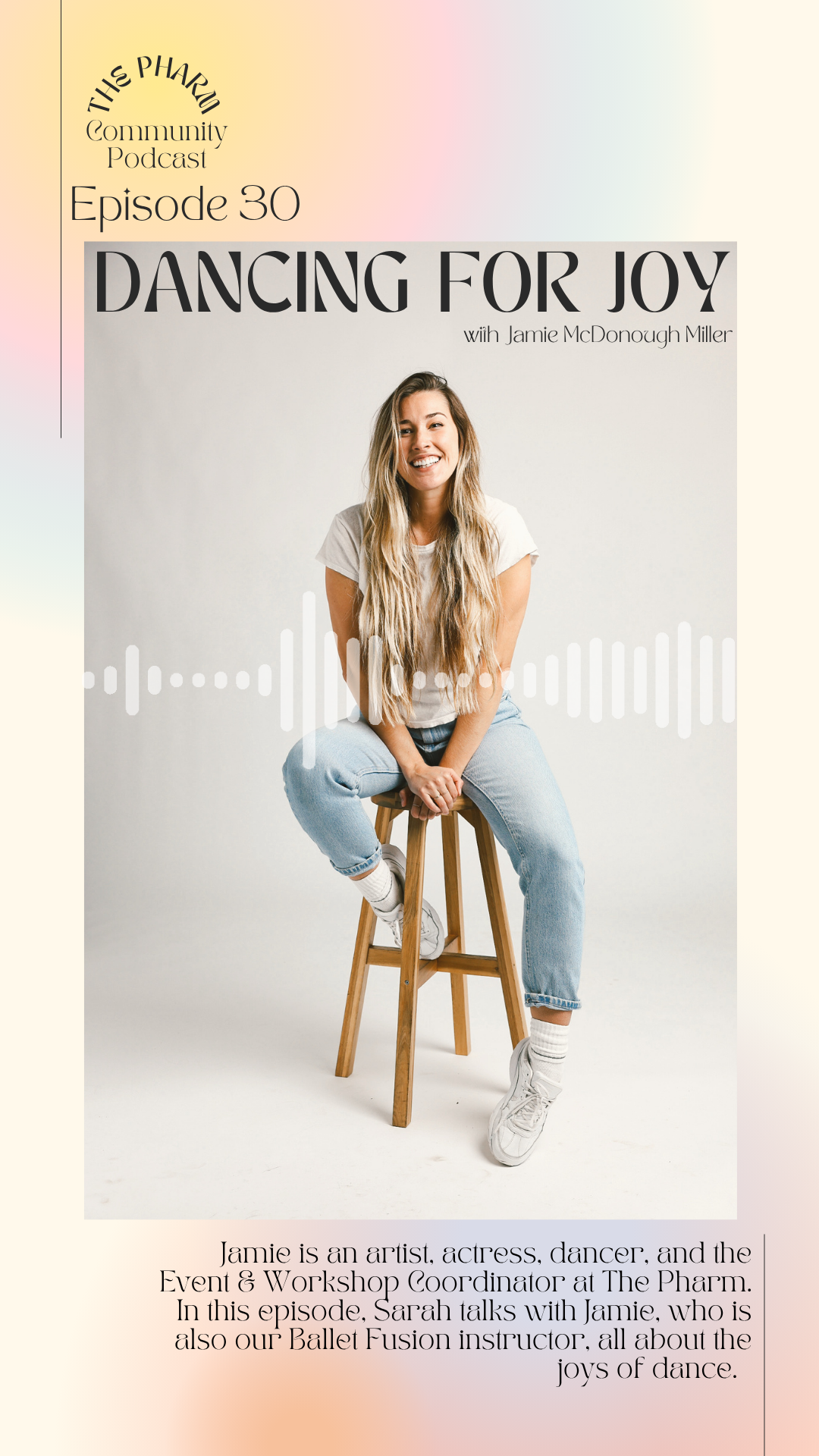 Playful social media graphic to market a wellness studio’s podcast.